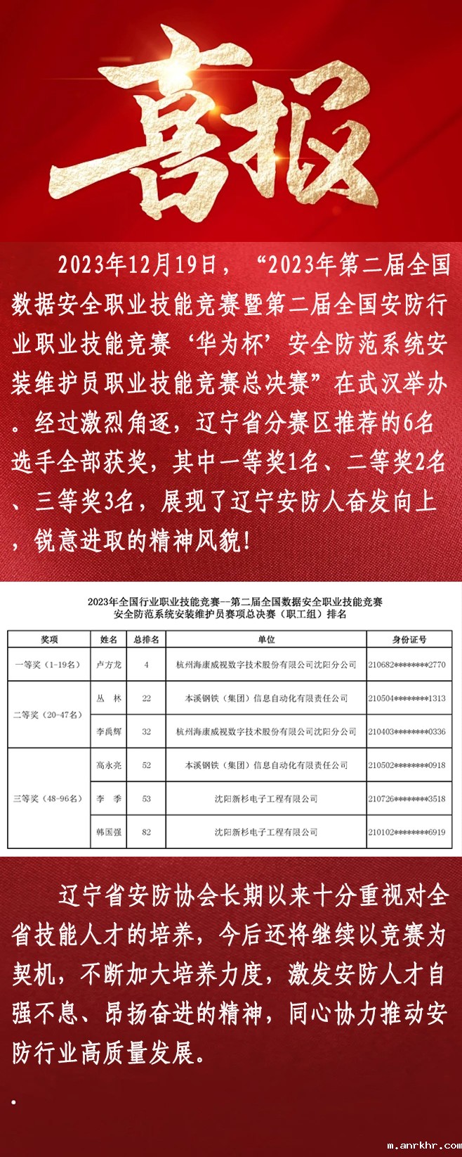 喜报!辽宁省分赛区选手在第二届全国安全防范系统安装维护员职业技能竞赛总决赛中喜获佳绩