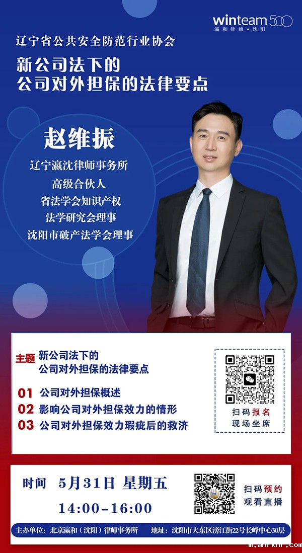 本期直播培训由辽宁瀛沈律师事务所赵维振律师主讲。赵维振律师是辽宁瀛沈律师事务所高级合伙人,省法学会知识产权法学研究会理事,沈阳市破产法学会理事。
